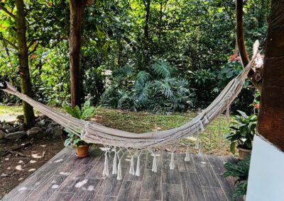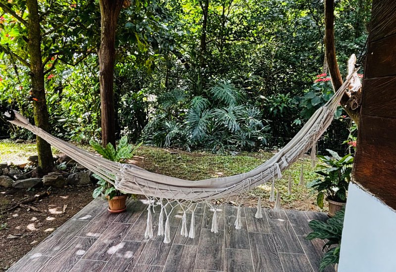 Aquí puedes caminar por la propiedad, sentarte en una hamaca o simplemente observar el paisaje.